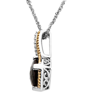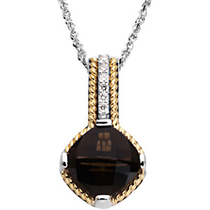 Genuine Smoky Quartz & Diamond Pendant | 10 x 10 mm | .07 Carat TW. Sterling Silver & 14K Yellow Gold. Matching ring: 67029. Set with 1ea 10.00x10.00 MM AA Checkerboard Genuine Quartz - Antique Square Checkerboard; AA Quality; Smoky & 6ea 0.012 Ct -- 1.40 MM I1 Round Diamond.
