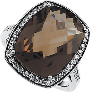Genuine Smoky Quartz and Diamond Ring 16 x 13mm .5 CTW Ref 138845
