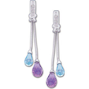 Genuine Swiss Blue Topaz, Amethyst and Diamond Earrings