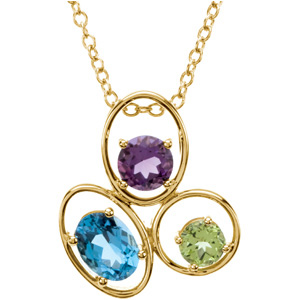 Set with:1ea 05.00 MM AA Faceted, Genuine Peridot - Round Faceted; AA Quality1ea 06.00 MM AA Faceted, Genuine Amethyst - Round Faceted; AA Quality1ea 08.00x06.00 MM AA Faceted, Genuine Topaz - Oval Faceted; AA Quality; Swiss Blue