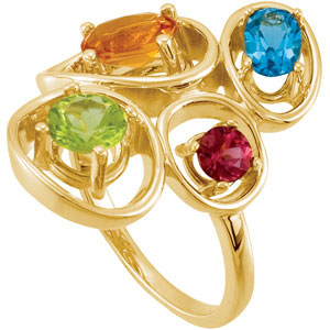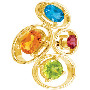 Set with:1ea 04.00 MM AA Faceted, Genuine Garnet Rhodolite - Round Faceted; AA Quality; Reddish Purple1ea 05.50 MM AA Faceted, Genuine Peridot - Round Faceted Arizona; AA Quality1ea 06.00x04.00 MM AA Faceted, Genuine Topaz - Oval Faceted; AA Quality; Swiss Blue1ea 07.00x05.00 MM AA Faceted, Genuine Citrine - Oval Faceted; AA Quality