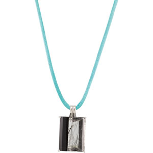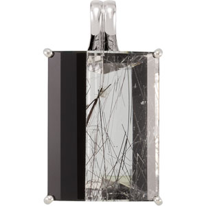 Genuine Tourmalinated Quartz & Onyx 16.5" Necklace. Sterling Silver. Set with 1ea 35.900 Ct -- 24x18 MM, Gemstone TOURMALINATED QUARTZ ONYX.