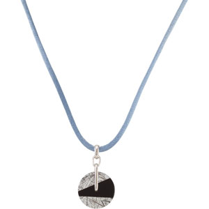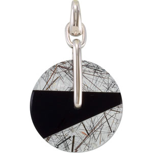 Genuine Tourmalinated Quartz & Onyx 16.5" Necklace. Sterling Silver. 1ea 20.800 Ct -- 20x20 MM, Gemstone TOURMALINATED QUARTZ ONYX FANCY ROUND (PUZZLE).