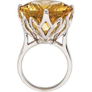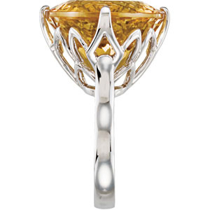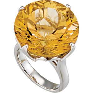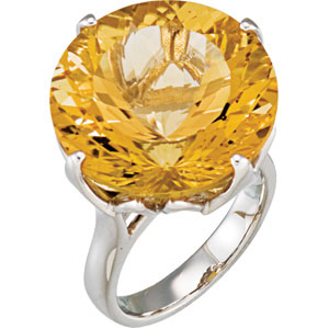 Genuine Yellow Quartz Ring. Sterling Silver. Set with 1ea 25.600 Ct -- 20x20 MM, Round Gemstone YELLOW QUARTZ.