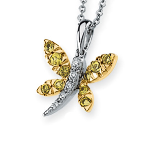 Genuine Yellow Sapphire & Diamond Necklace | .04 Carat TW; Matching Earrings: 65681; Matching Brooch: 65682. Belcher chain measures 18".