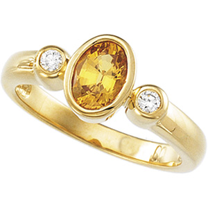 Genuine Yellow Sapphire & Diamond Ring | 7 x 5 mm. Ref 70855.