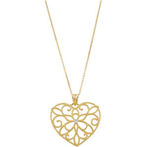 Heart Necklace with 18" Cable Chain. 14K Yellow Gold. Set with 1ea 0.005 Ct -- 1.5 MM, H/I Color I1-I2 Round Diamond.