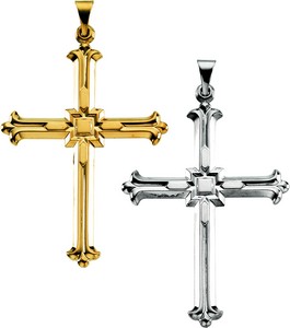 Large Cross Pendant | 42.5 x 31.5 mm. Available in 14K Yellow or 14K White Gold.