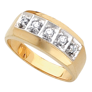Men's 5 Stone Diamond Ring | 1/4 Carat TW. Solid back. 9.5 mm width.