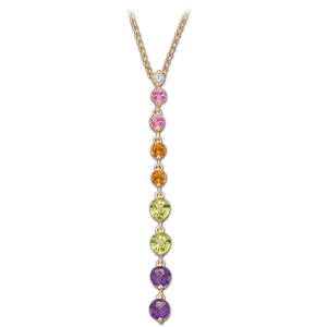 Multi Colored Genuine Gemstones & Diamond Necklace | .035 Carat TW
