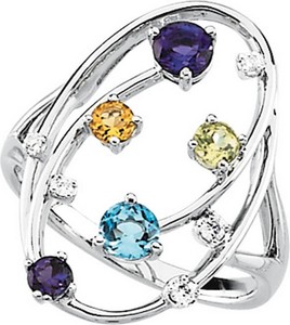 Genuine Citrine,Garnet,Amethyst,Peridot,Swiss Blue Topaz And Diamond Ring | .07 Carat TW | 3, 4 mm; Matching Necklace: 65947.
