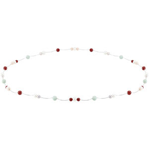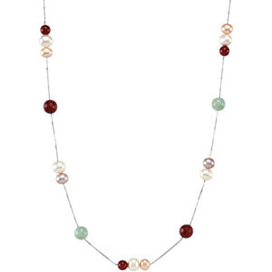 Multi color Cultured Pearl, Genuine Jade and Red Agate 36 inch Necklace Ref 267153