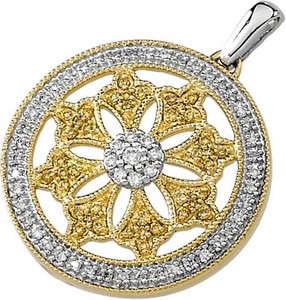 Natural Yellow and White Diamonds Circle Pendant .5 CTW Ref 420784