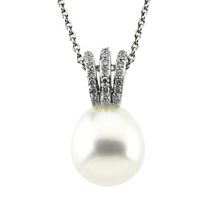 Paspaley South Sea Cultured Pearl Pendant | 12 mm Drop | 1/5 Carat TW. 14K White Gold. Chain sold separately. Set with 1ea 12.00 MM Fashion Undrilled, Cultured Pearl South Sea - Drop Undrilled Paspaley South Sea; Fashion Quality; White.