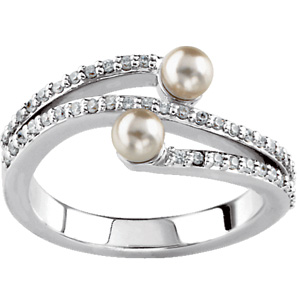 Set with:2ea Cultured Pearl - Round Akoya; White 04.00 MM AA Undrilled 47ea Genuine Diamond G-H Round SI1 01.00 MM (01.00 - 01.15) Full Cut