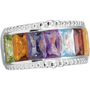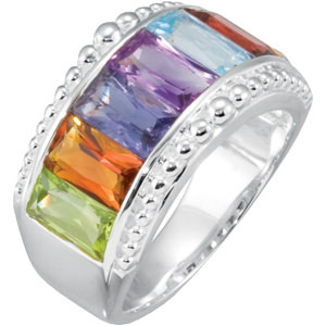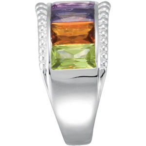 Genuine Peridot, Madeira Citrine, Iolite, Amethyst, Sky Blue Topaz, Mozambique Garnet And Citrine Ring. Sterling Silver. 7 x 4 mm.
