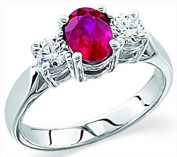 Set with:1ea Genuine Ruby - Oval 07.00x05.00 MM AA Faceted 2ea Genuine Diamond G-H Round SI1 03.80 MM (03.55 - 04.00) Full Cut