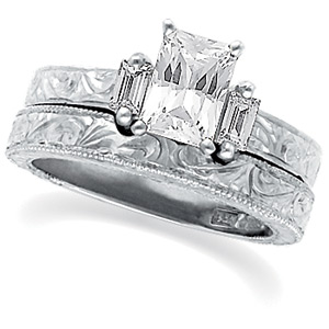 Platinum Diamond Hand Engraved Engagement Ring | 1/6 Carat TW. 1 Carat center Diamond sold separately. Matching wedding band sold separately.
