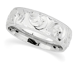 Platinum Hand Engraved Wedding Band | 6 mm Wide