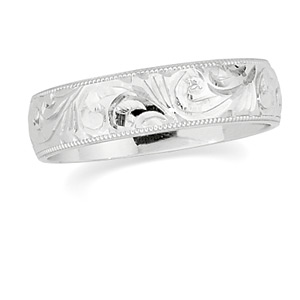 Platinum Hand Engraved Wedding Band 6mm Wide Ref 912840