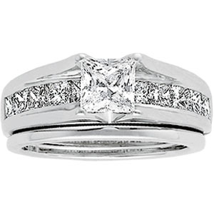 Princess Cut Bridal Semi-Set 1-1/4 Carat TW Engagement Ring with Matching Band. Princess cut 1 Carat center diamond sold separately.