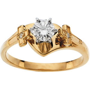 Religious Bridal Engagement Ring and Band | .52 Carat TW. 14K Yellow Gold. Ref 16654.