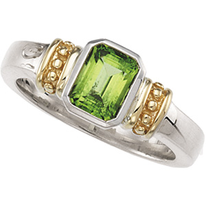 SS/14KY 7 x 5 mm Genuine Peridot Ring; Ref 70660. Set with 1ea 07.00x05.00 MM AA Faceted, Genuine Peridot - Emerald/Octagon Faceted; AA Quality.