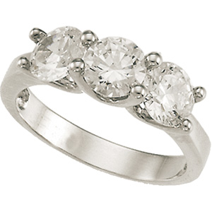 SS 6 mm Cubic Zirconia Ring, Size 7. Set with 3ea 1.25 Ct -- 6 mm Round Gemstone CZ.