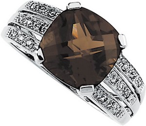 Genuine Smoky Quartz & Diamond Split-Shank Ring | 10 x 10 mm | 1/10 Carat TW