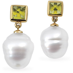South Sea Cultured Circle Pearl & Genuine Periodot Earrings | 5 mm / 11 mm. Available in 14K Yellow Gold or 14K White Gold. Due to their unique nature, pearls will vary from what is pictured. Matching pendant: 64066