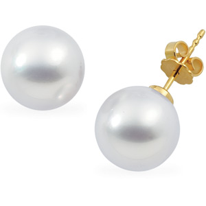 South Sea Cultured Pearl Earrings | 10 mm Round Fine. 14K Yellow Gold. Set with 2ea 10.00 MM Fine Undrilled, Cultured Pearl South Sea - Round Undrilled Paspaley South Sea Pair; Fine Quality; White.