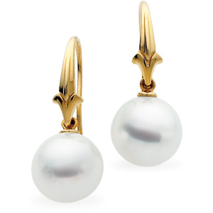 South Sea Cultured Pearl Earrings | 12 mm Fine. 18K Yellow Gold. Set with 2ea 12.00 MM Fine Undrilled, Cultured Pearl South Sea - Oval Undrilled Paspaley South Sea Pair; Fine Quality; White.