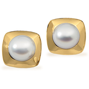 South Sea Cultured Pearl Earrings | 12 mm. 18K Yellow Gold. Set with 2ea 12.00 MM Fine Undrilled, Cultured Pearl South Sea - Button-flat Undrilled Paspaley South Sea Pair; Fine Quality; White.