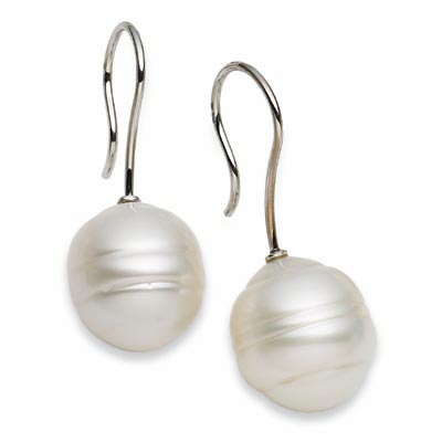South Sea Cultured Pearl Earrings | 14 mm Fine Circle. 18K Palladium White Gold. Set with 2ea 14.00 MM Fine Undrilled, Cultured Pearl South Sea - Circle Undrilled Paspaley South Sea Pair; Fine Quality; White.