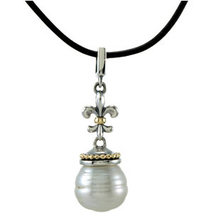 South Sea Cultured Pearl Pendant. Sterling Silver & 14K Yellow Gold. Shown Cord CH613 and Enhancer 84572 sold separately. Ref. 84644. Set with 1ea 12.00 MM Fashion Undrilled, Cultured Pearl South Sea - Circle Undrilled Paspaley South Sea; Fashion Quality; White.