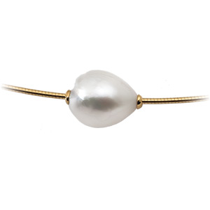 South Sea Cultured Pearl Slide | 14 mm Fine Baroque. Available in 18K Yellow Gold or 18K White Gold. Set with 1ea 14.00 MM Fine Undrilled, Cultured Pearl South Sea - Baroque Undrilled Paspaley South Sea; Fine Quality; White.