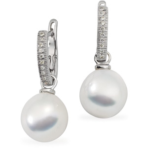 South Sea Cultured Pearl and Diamond Earrings 12mm Fine Drop Ref 635601