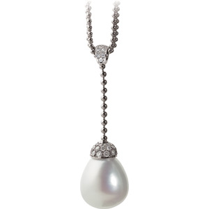 South Sea Cultured Pearl & Diamond Necklace | 15 mm Fine Drop. 18K White Gold. Set with 1ea 15.00 MM Fine Undrilled, Cultured Pearl South Sea - Drop Undrilled Paspaley South Sea; Fine Quality; White.