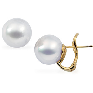 South Sea Cultured Pearl Earrings with Omega Back | 11 mm Fine Full Button. 18K Yellow Gold.