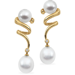 South Sea Pearl and Diamond Earrings 11mm Fine Drop .06 CTW Ref 772490
