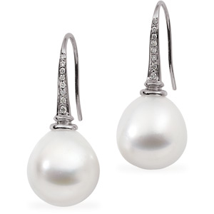 South Sea Cultured Pearl & Diamond Earrings | 14 mm Fine | 1/10 Carat TW. 18K Palladium White. Set with 8ea 01.00 MM (01.00 - 01.15) Full Cut, VS ROUND FULL CUT G-H GENUINE DIAMOND & 8ea 01.20 MM (01.16 - 01.23) Full Cut, VS ROUND FULL CUT G-H GENUINE DIAMOND.