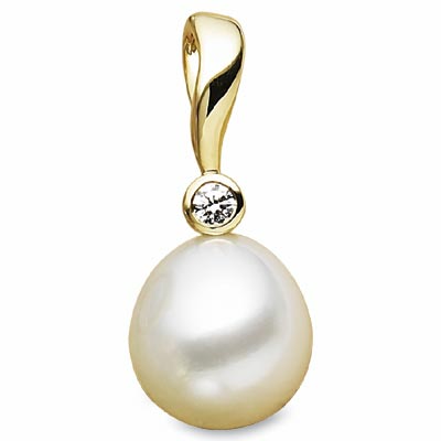 South Sea Cultured Pearl & Diamond Pendant | 12 mm Fine | 1/10 Carat TW. 18K Yellow Gold. Set with 1ea 03.00 MM (02.81 - 03.10) Full Cut, VS ROUND FULL CUT G-H GENUINE DIAMOND & 1ea 12 mm Fine Pearl.