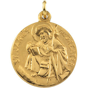 St. James Medal | 18 mm. St. James is the patron saint of laborers, pharmacists, pilgrims, rheumatism, Chile and Spain. Available in 14K Yellow Gold.