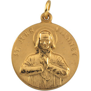 St. John Vianney Medal | 18 mm. St. John Vianney is the patron saint of priests. Available in 14K Yellow Gold.