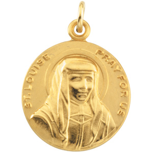 St. Louise Medal | 18 mm. St. Louise is the patron saint of social workers. Available in 14K Yellow Gold.