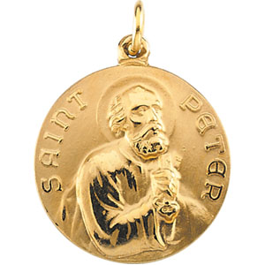 St. Peter Medal | 18 mm. St. Peter the Apostle is the patron saint of fishermen and longevity. Available in 14K Yellow Gold.
