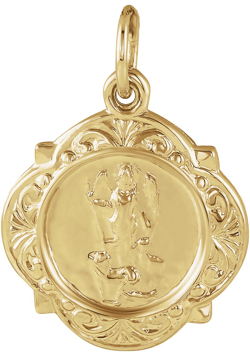 St. Raphael Medal | 12.14 x 12.09 mm. 14K Yellow Gold.