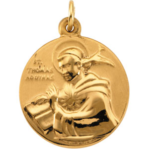 St. Thomas Aquinas Medal | 18 mm. St. Thomas Aquinas is the patron saint of schools and students. Available in 14K Yellow Gold.