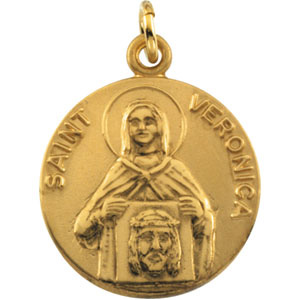 St. Veronica Medal | 18 mm. Available in 14K Yellow Gold.