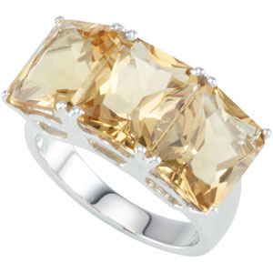 Sterling Silver Genuine Honey Quartz Ring | 10 x 8 mm. Set with 3ea 3.190 Ct -- 10x8 MM, Gemstone Honey Citrine.